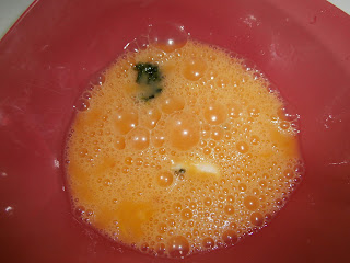 Batimos los huevos, le añadimos sal, una cucharadita de ajo, y una cucharadita de perejil. Removemos.