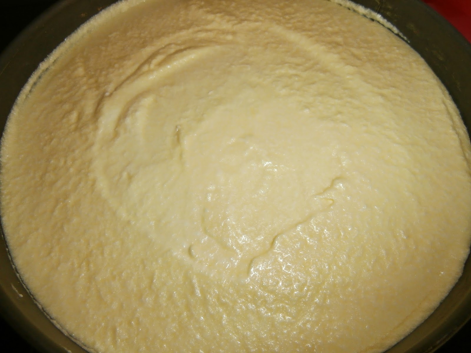 Vertemos la mezcla en el molde donde tenemos el bizcocho, metemos en el frigorífico, hasta que la gelatina haya hecho su función y haya cuajado, por lo menos 3 horas.